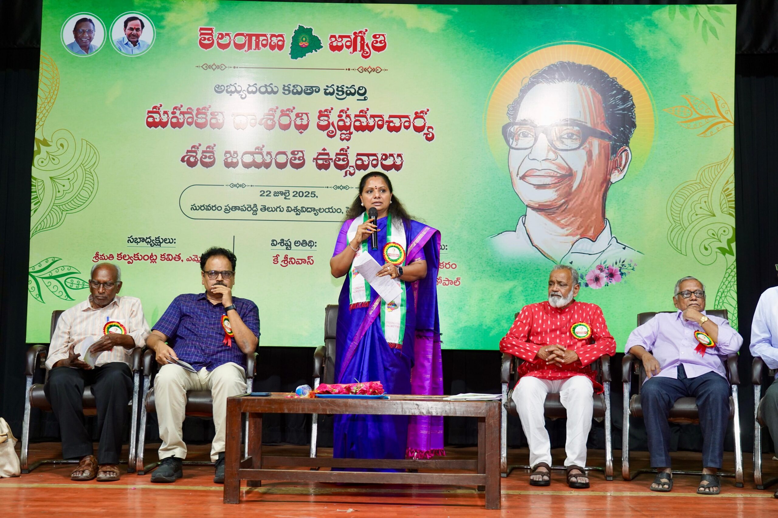 حیدرآباد: تلنگانہ کے ممتاز انقلابی شاعر دشرتھی کرشنماچاری کی صد سالہ یوم پیدائش تقریب تلنگانہ جاگروتی کے زیر اہتمام پرتاب ریڈی تلگو وشوا ودیالیم، نامپلی، میں نہایت شان و شوکت سے منائی گئی۔