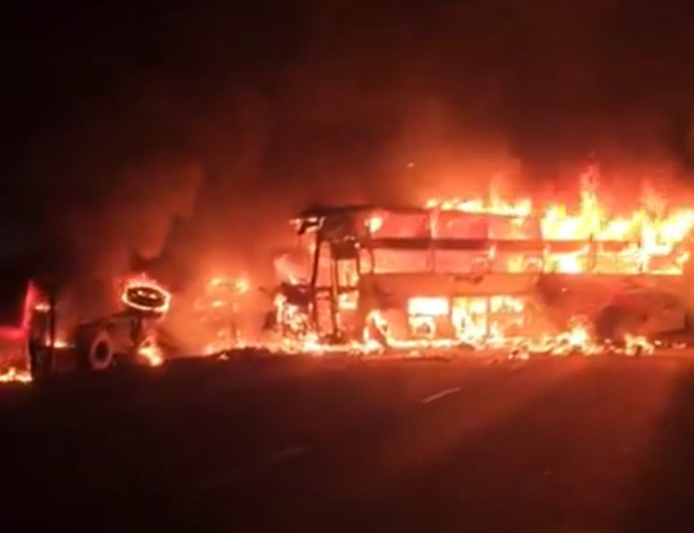 آندھرا پردیش کے ضلع نندیال میں نیشنل ہائی وے پر سری ویلا میٹا کے قریب گزشتہ شب ایک دل دہلا دینے والا سڑک حادثہ پیش آیا، جہاں ایک پرائیویٹ ٹراویلس کی بس میں آگ لگنے کے نتیجہ میں تین افراد زندہ جھلس کر ہلاک ہو گئے۔